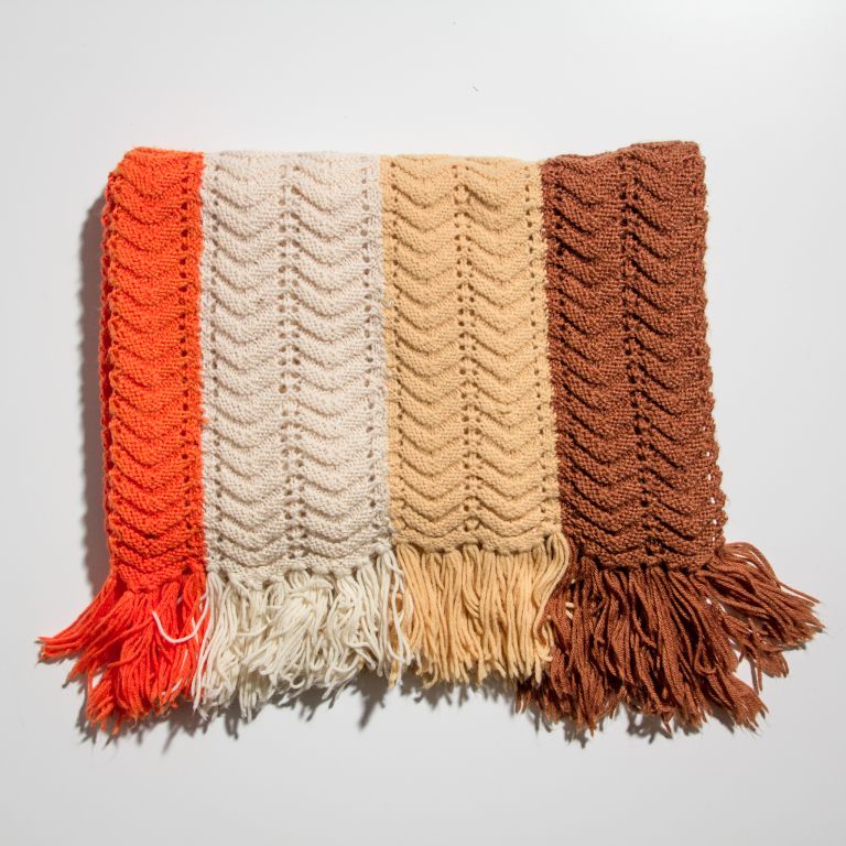 Aunt Alpha’s Afghan. My mother-in-law, Gladys Covault, gave me this blanket. She was born in 1905 on a farm in Nebraska, USA. She and her three sisters; Opal, Mabel and Alpha were the family farmhands. They could hitch up a team of horses as well as cook, preserve food, and sew. They embroidered, crocheted, and knitted. When Gladys was 10 their mother died and their father soon remarried. The girls did not get along with their stepmother! Alpha made this blanket in the 1970s when she lived in Beatrice, Nebraska and owned a beauty parlor.