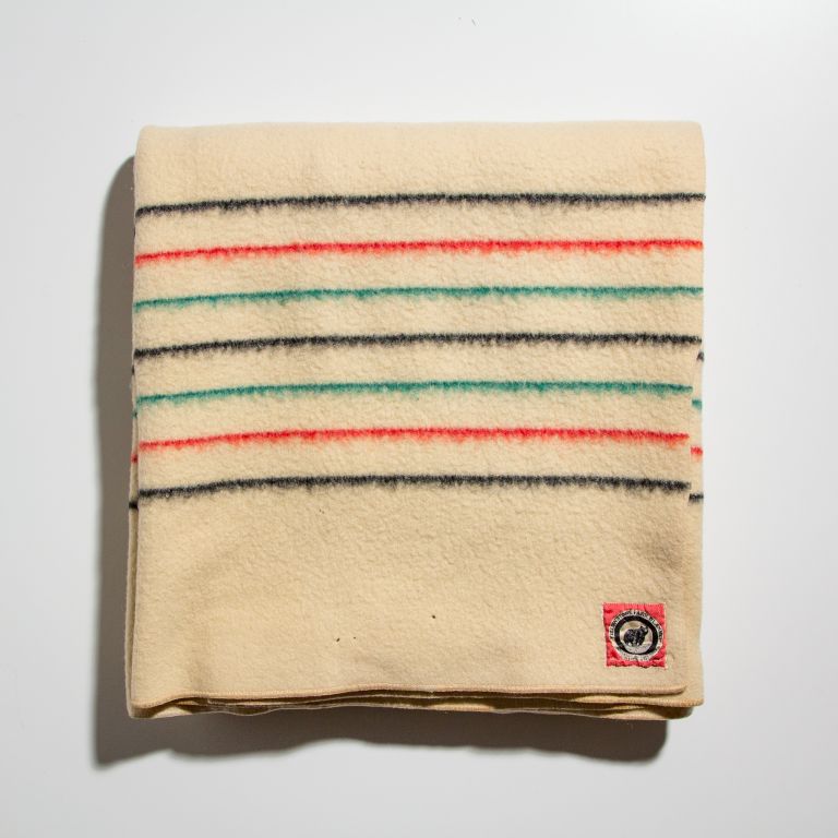 The entire story will come soon, recounting Margo’s story about this blanket which she recently gave me (Mary). We both have Pendleton blankets in our homes that belonged to our parents and have [illegible] for many years. We enjoy and appreciate the worn parts, the stains and holes that are signs of the wear and people who have used them … This blanket was found by Margo at a garage sale — a treasure. May it carry forward our tradition of giving or trading Pendleton blankets — may this project promote peace within the troubled countries and religions.