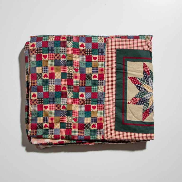 I got a place in Portland a year ago, and this quilt had been left behind by the previous owner, who had also built the beautiful home. This quilt belonged to his daughter when she was a child. Sometimes I see her biking on the loop beside the house.