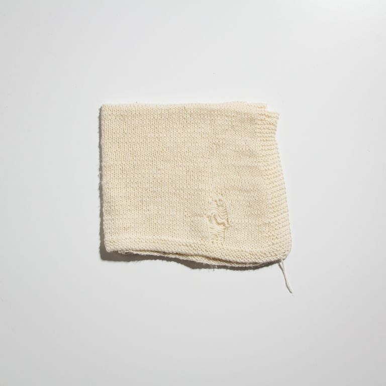 My mom was in town just before my son was born, to help us prepare and to be there for the birth. While in town she found soft ivory wool. My son arrived promptly on his due date, and before the blanket was complete. In her rush to complete it not all the knots were fully secured. More ventilation for our spring baby.