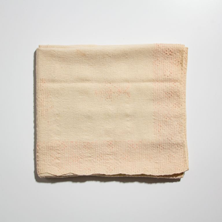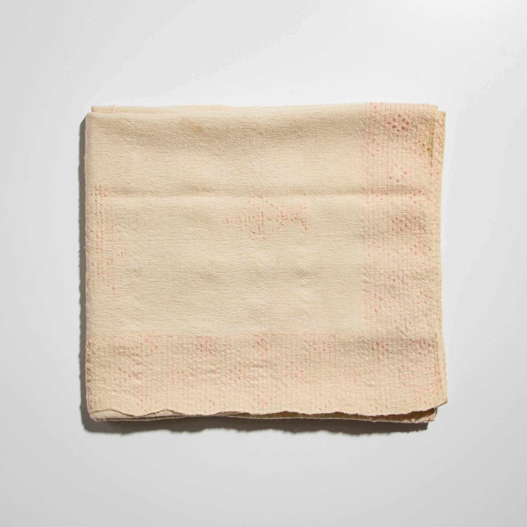 This is my mother Elaine’s childhood blanket. She named it “Scratchy” when she was very young, in the early 1920s. Though long out of use, she always took care of it - it was near to her heart until the end of her life in September 2015. She took it to college with her, partly as a joke and partly for practicality. She loved artists and was very supportive of artists. She would be proud to have Scratchy live on in an artist’s work.