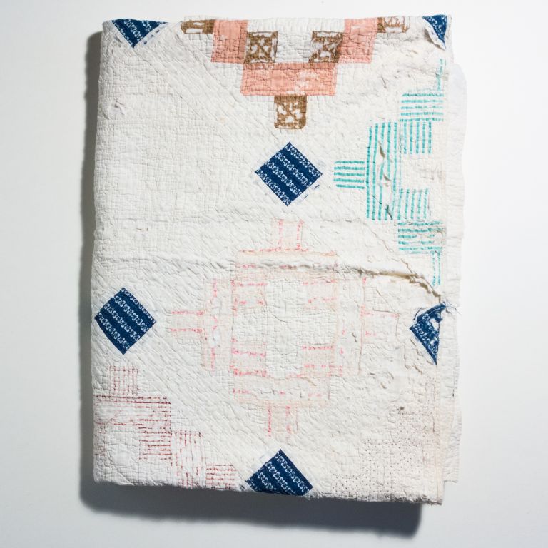 My grandmother Ella Drummond made this quilt. She taught me to value handmade work. Though this quilt is close to being worn through, I believe Marie Watt’s project will keep and make this quilt part of something bigger.