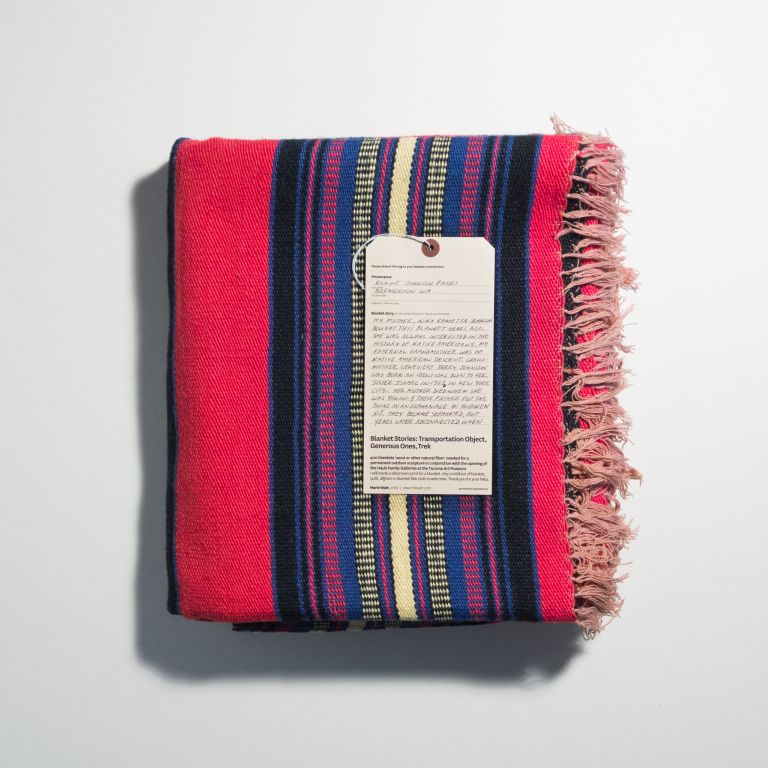 My mother, Nina Rametta Johnson, bought this blanket years ago. She was always interested in the Native Americans. My paternal grandmother was of Native American descent. Grandmother Genevieve Berry Johnson was born an identical twin to her sister Isabel in 1907 in New York City. Her mother died when she was young and their father put the twins in an orphanage in Hoboken, NJ. They became separated, but years later reconnected when they saw each other across the street in NYC. My grandmother died from cancer at 48, but her twin lived to be 101. My mother now has Alzheimer’s disease and dementia, so I am the keeper of her memories.