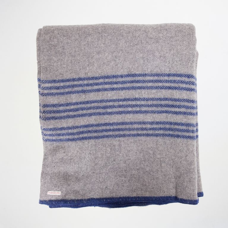 This blanket belonged to my late uncle Pat Christie and is donated in memory of him. Pat’s passion was flying; he gained his pilot license at 17 in 1934 before he was allowed a driving license! By 1937 he had joined the Royal Air Force in Great Britain as the conflict with Germany at the outset of World War II was looming. He fought through the Battle of Britain (was shot down at least twice), flew reconnaissance missions and received the Distinguished Flying Cross and Bar as the war progressed. Sadly, at the end of the war in Europe his plane went down while ferrying a plane from Montreal, Canada to New York—he was almost 25 years old and had packed a lot of living and adventure into his short life. One story that shows his spirit is after having been shot down and landing in the Thames River, his rescuers hauled him into a boat and he told them to quickly take him down river to the center of London as he didn’t want to be late for his date at the Ritz! This blanket would have accompanied him to a boy’s camp in the back woods of Quebec, Canada.