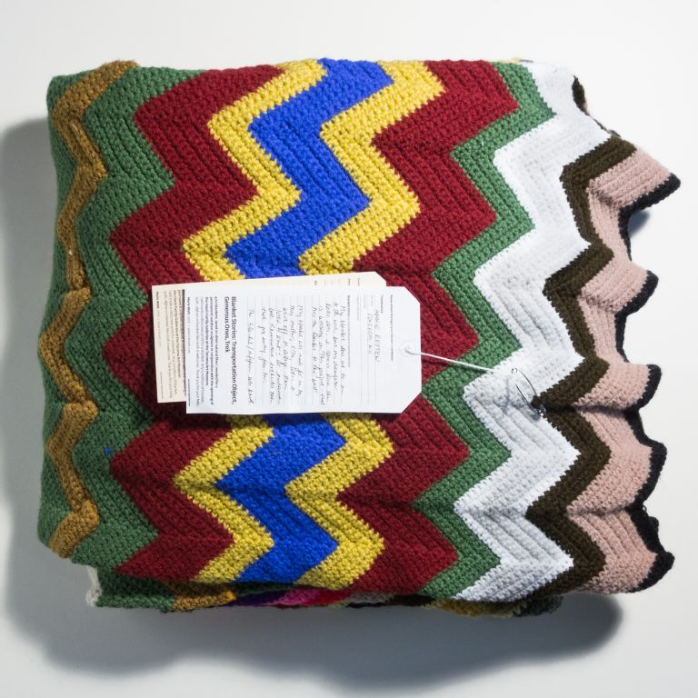 My blanket was made for me by my mother, Elsa, when I went off to college. Mom loved to knit and do needlework but Rheumatoid Arthritis took that joy away from her.