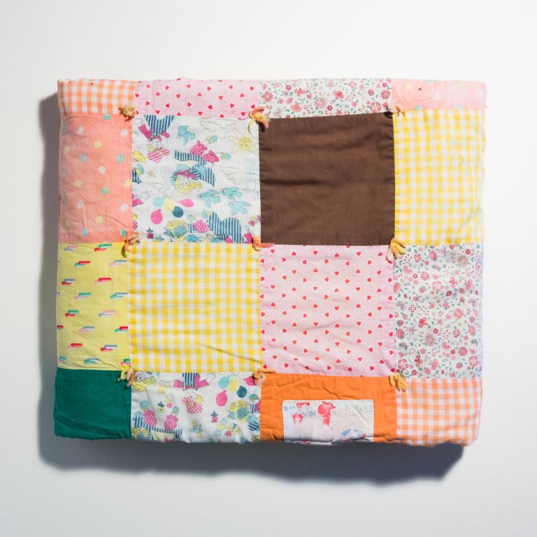 This blanket was made by Paula Furguson in San Bernadino, CA in 1977. Originally used as a bedspread; it was brought to the Northwest in 1987. From 1987-2014 it was used for many family outings as a ground cloth and was known as “picnic blankie.” The blanket traveled widely and was a common backdrop to many family photos that showed the kids at every stage of their childhood. As a family it is amusing to see how much we all have changed—but the “picnic blankie” remained the same. All the photos are similar in that we only took it out on beautiful sunny days so we have a very positive feeling toward this blanket. It represented many family outings and was the base camp of many wonderful memories.