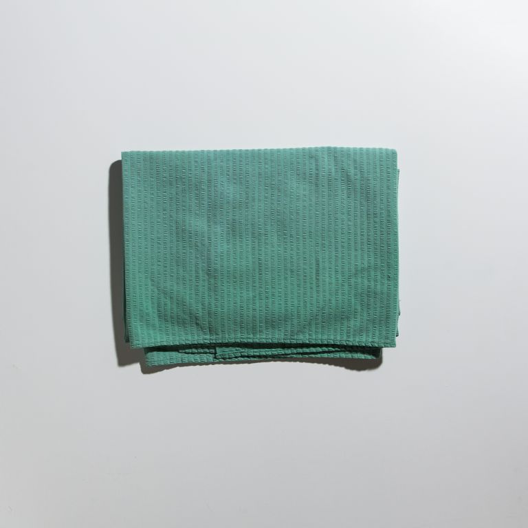 This green tablecloth is of the same era. It was in Ward and Judy’s home in 1958; it survived Judy and her beloved dogs, and now serves as a “stand in” for the cherished yellow blanket.