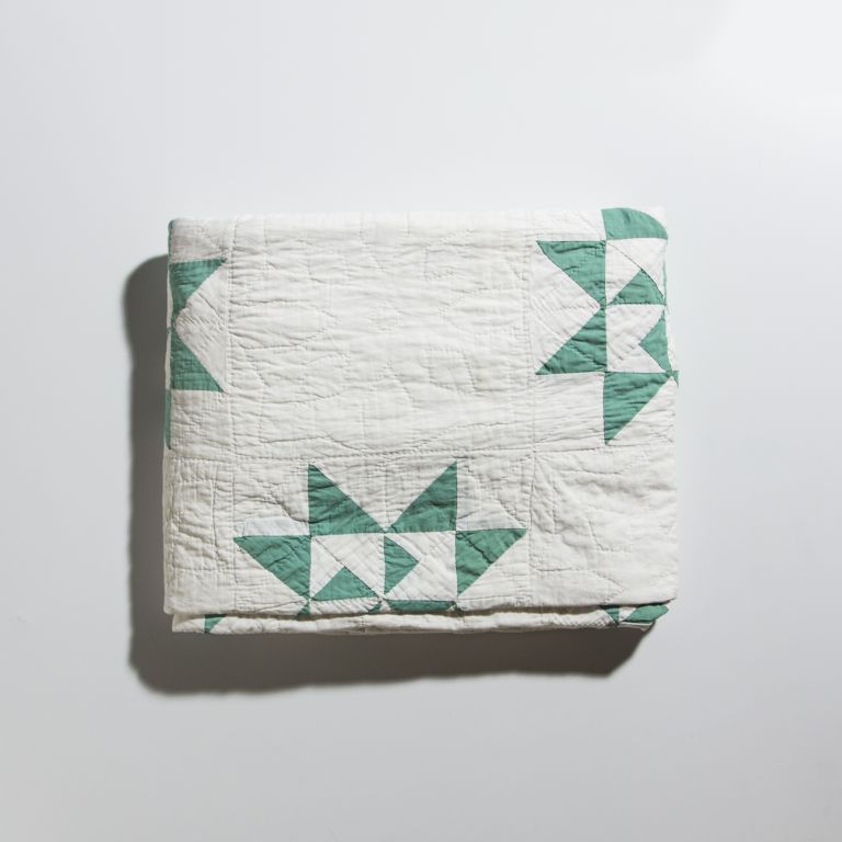 Later, Ed was employed as a mechanic and Sibyl found work in a cannery, which enabled them to rent and later buy a small house where the now completed green-and-white star quilt would cover their bed for the next 40 years.