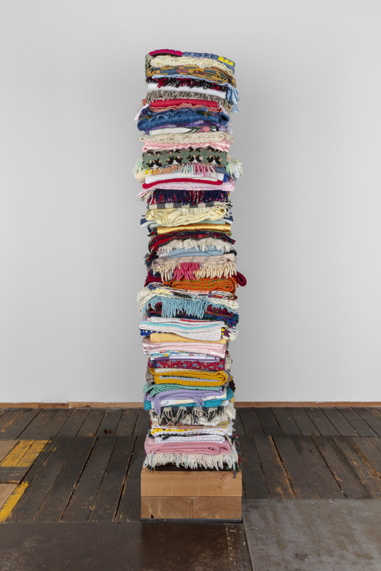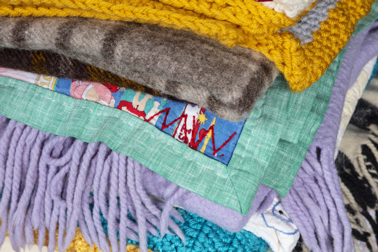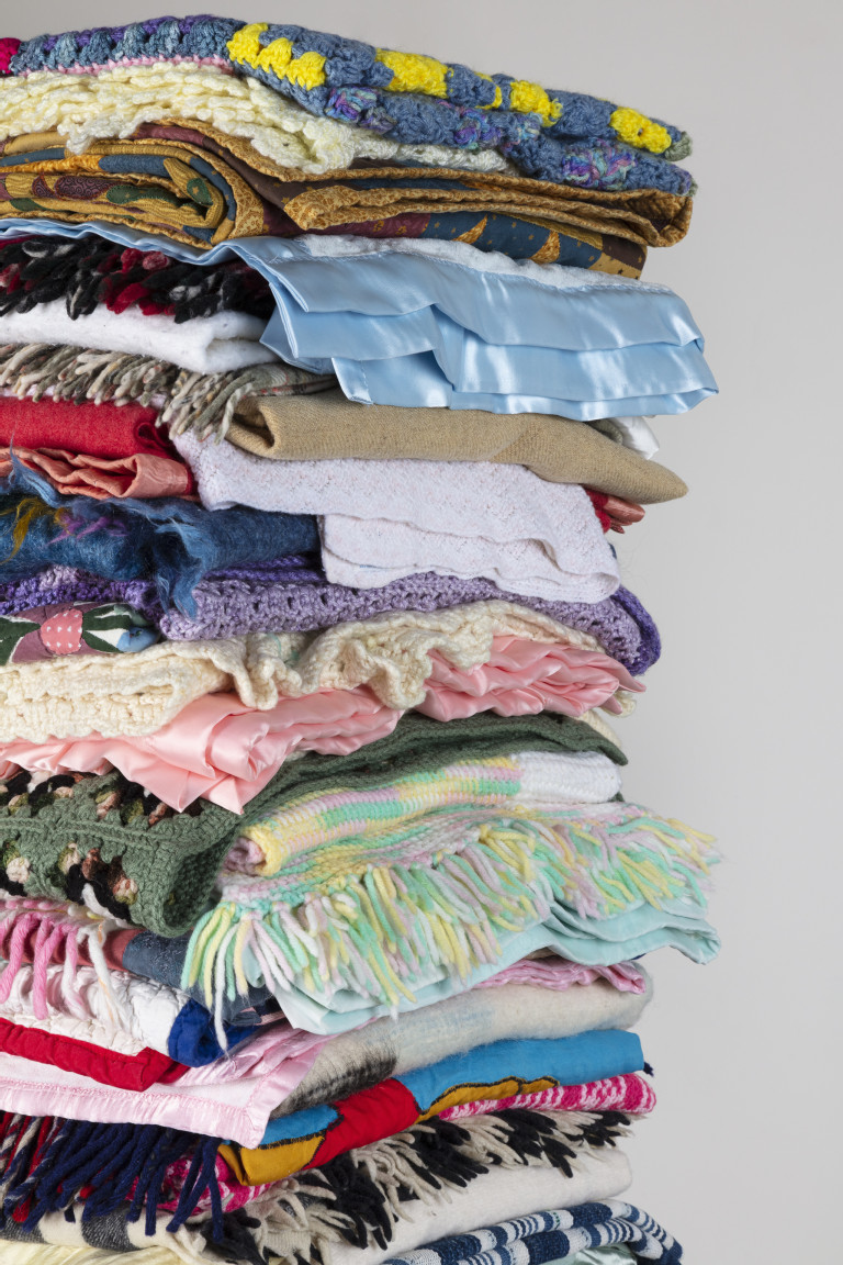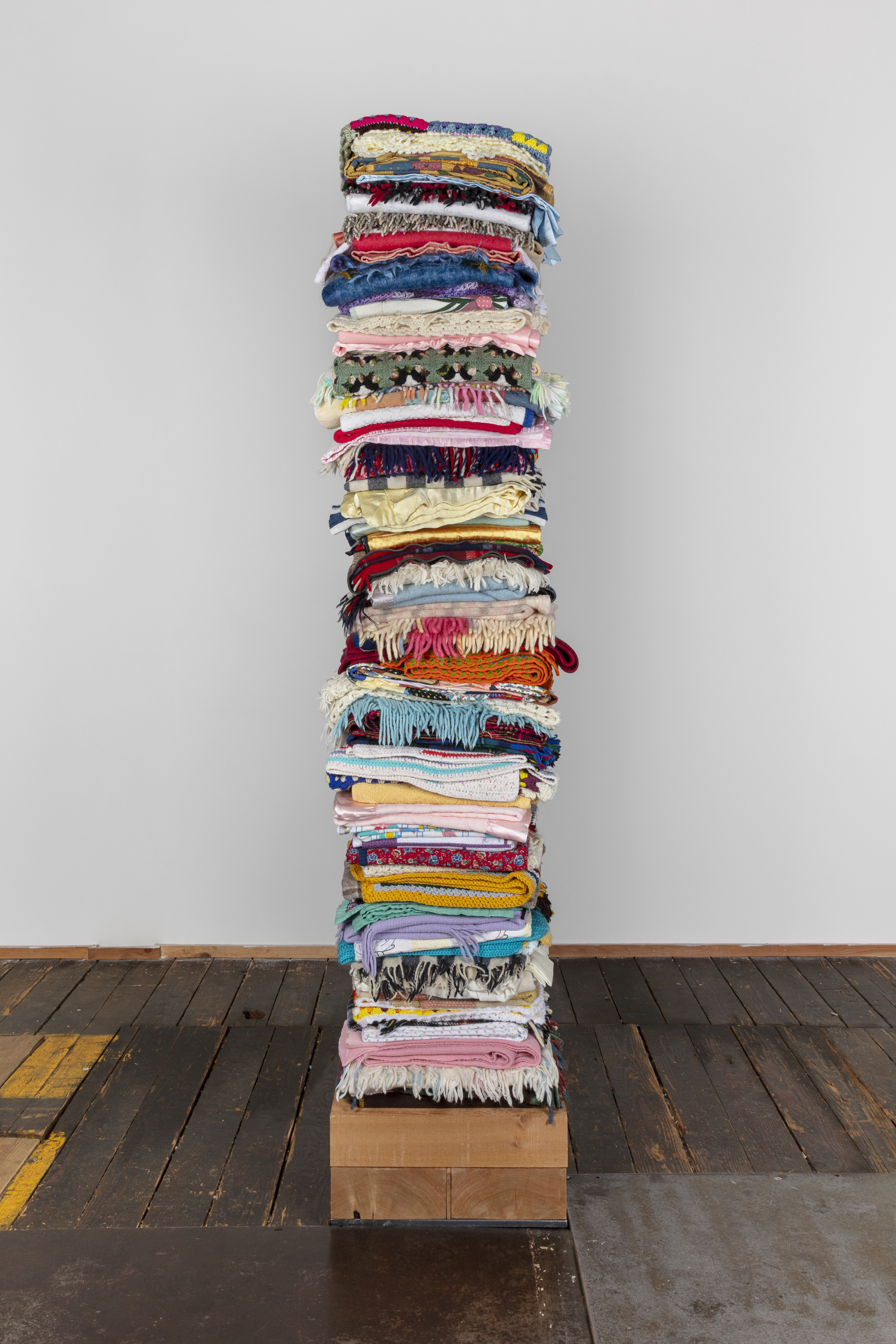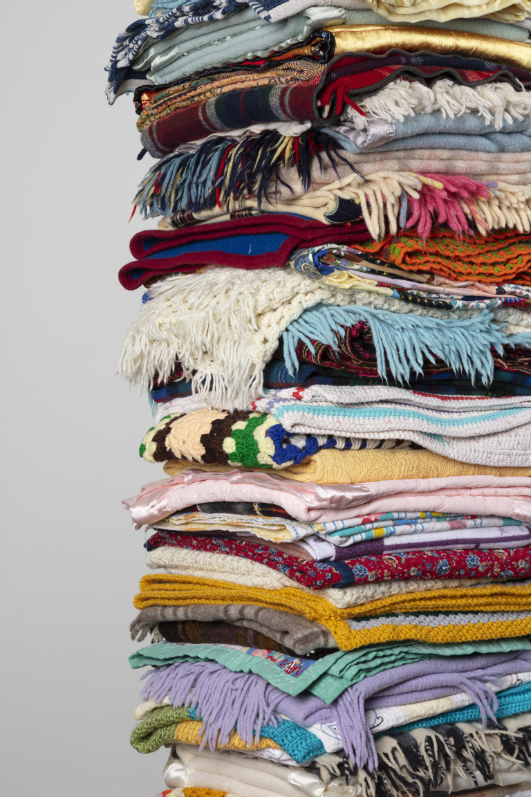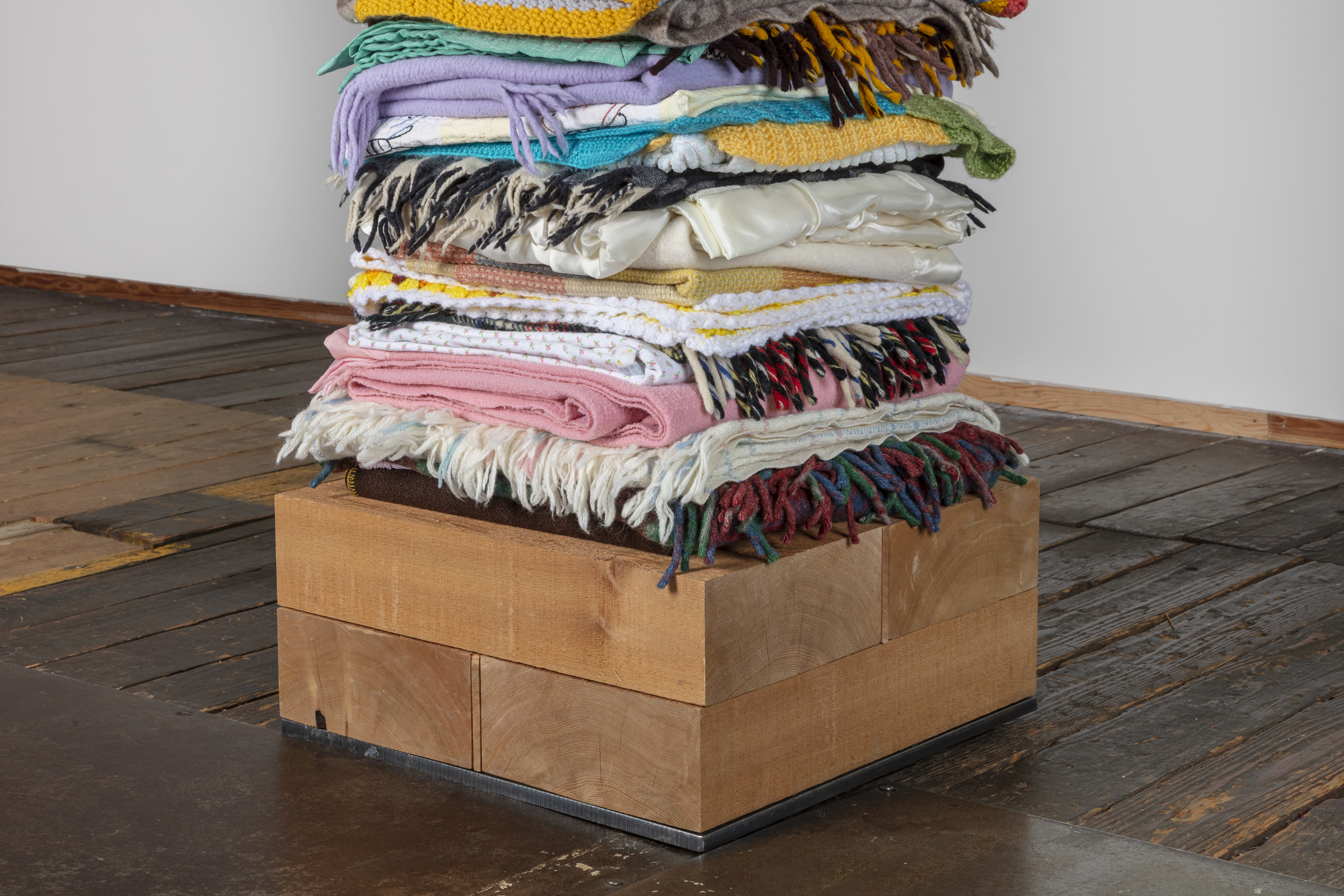 Reclaimed blankets, cedar, steel