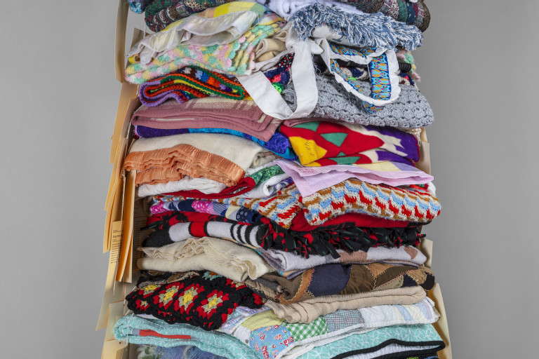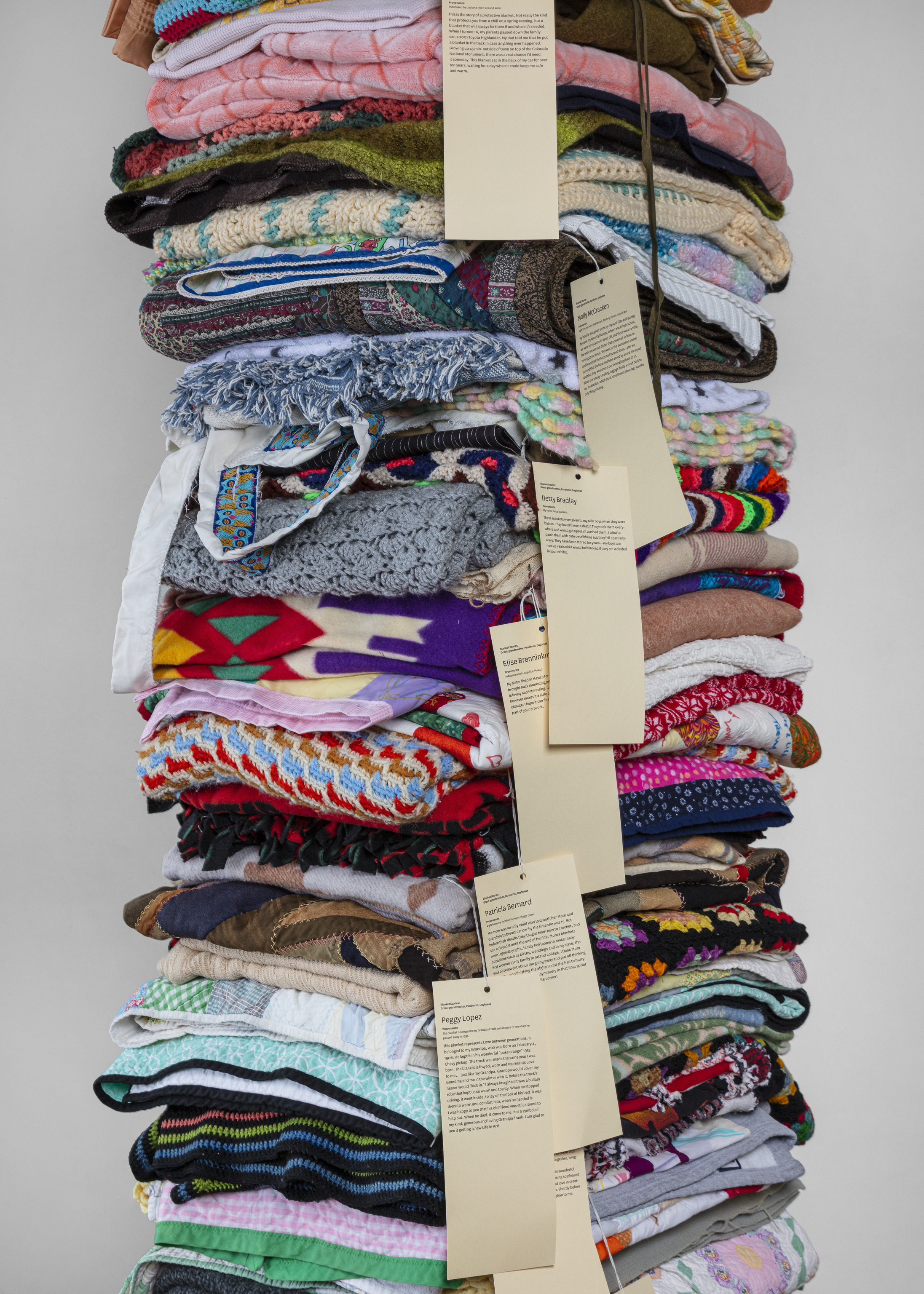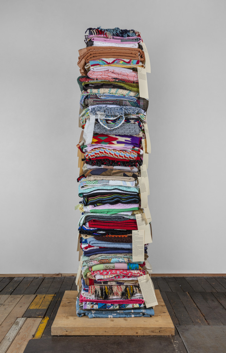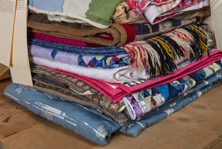 105 reclaimed blankets from 21 states, cedar