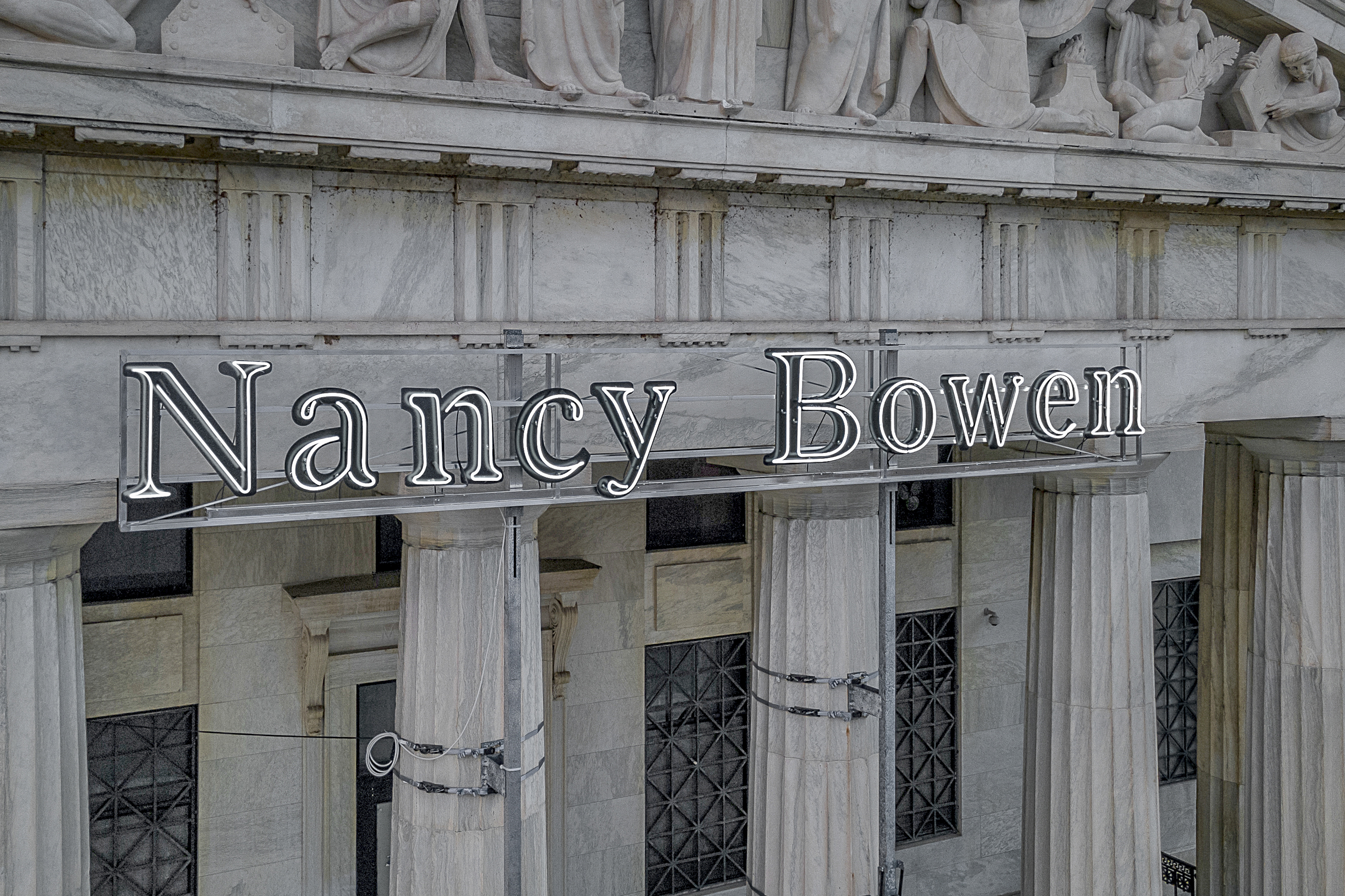 The project includes two neon signs spelling out Nancy Bowen’s name. How does saying Nancy Bowen’s name create awareness of the racism that led to her 1930 conviction in the court of public opinion before she was tried? How does saying her name invite us to witness the names of other people, over time and up to this moment, who have been wrongfully judged?