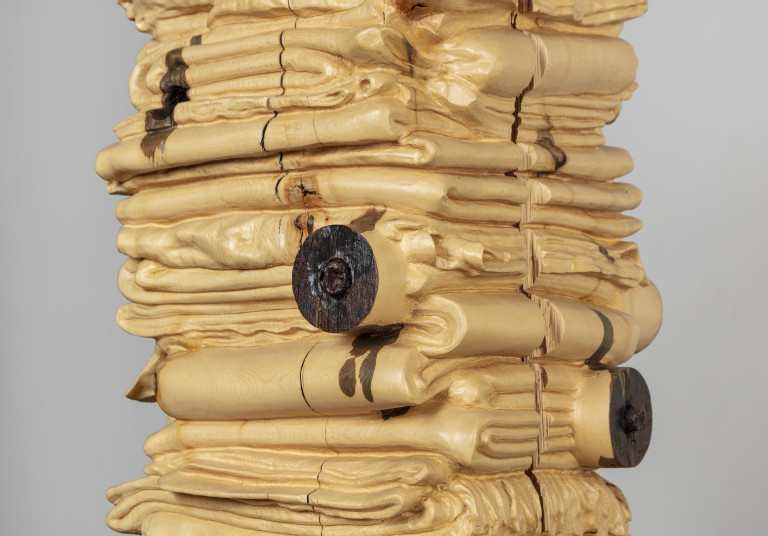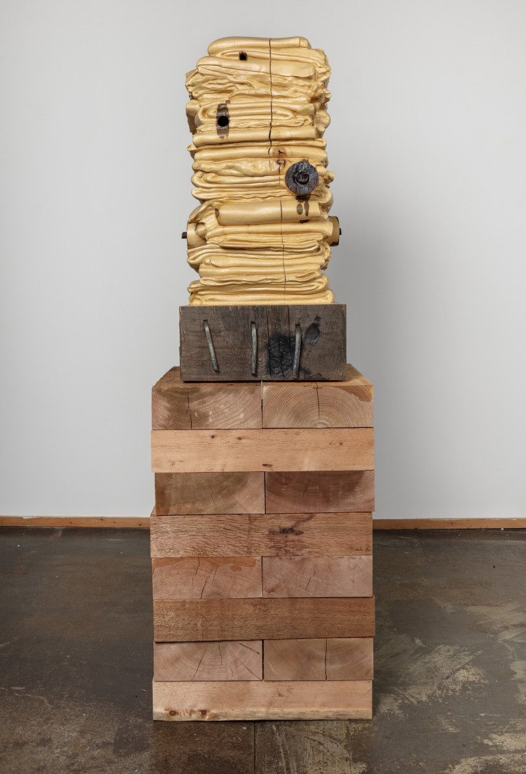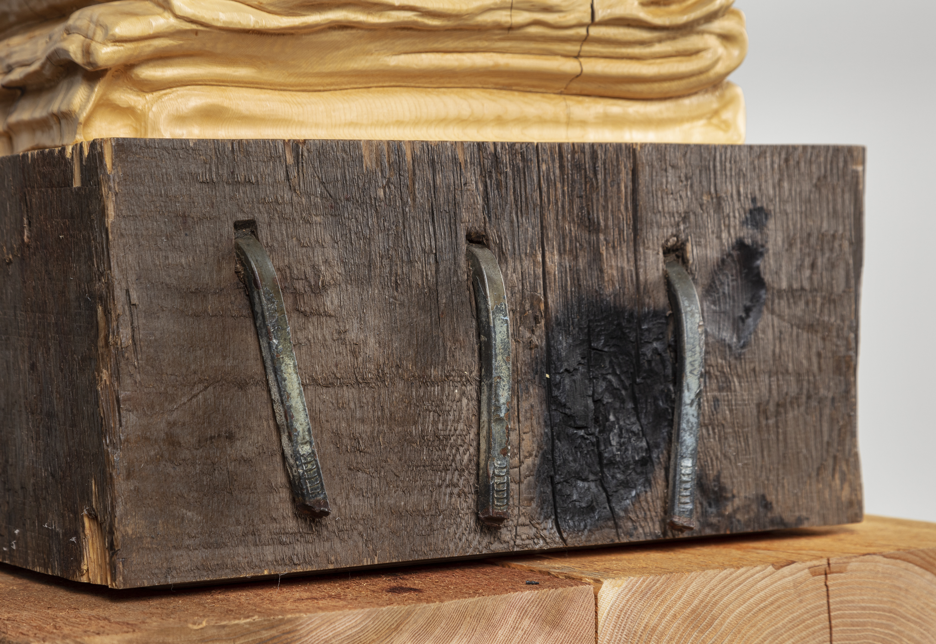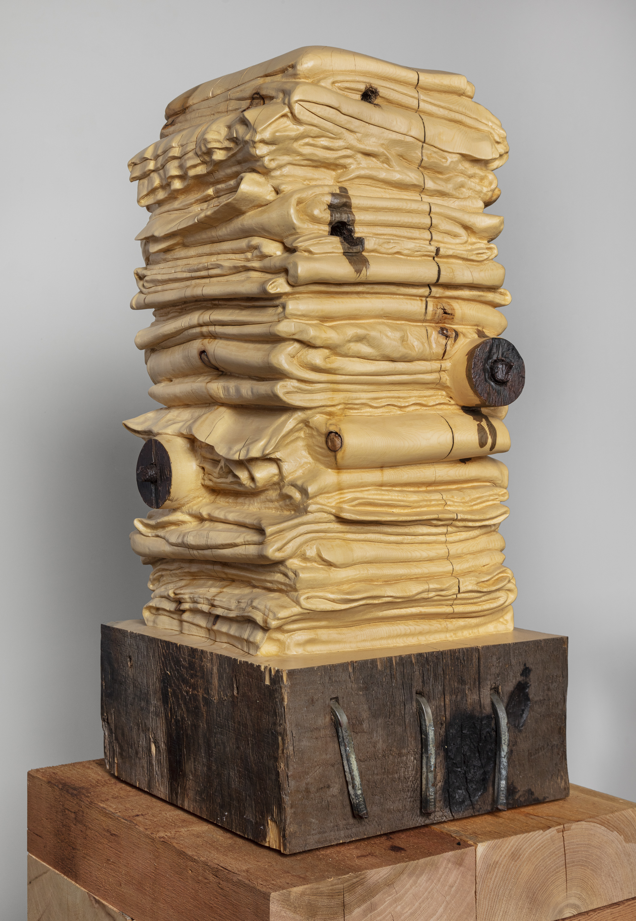 Reclaimed white cedar, steel components, cedar base