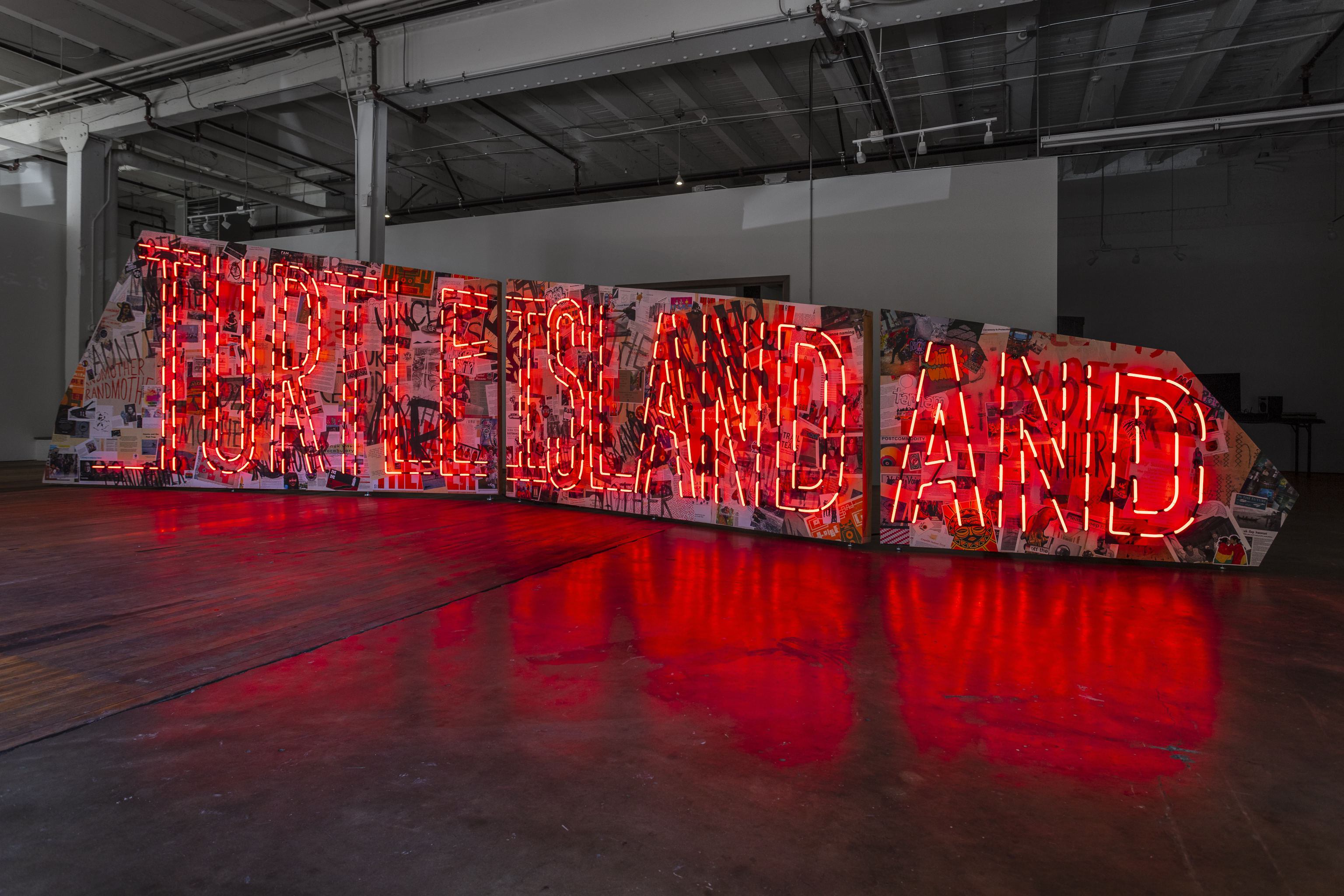 The Haudenosaunee call the land now known as North America “Turtle Island.” It is a name derived from the Haudenosaunee creation story that speaks of Skywoman’s descent from Skyworld and the aid of the animals in her safe landing. In recognition of the multitude of Indigenous origin stories and place names, this sign proclaims not just “Turtle Island” but “Turtle Island And.”