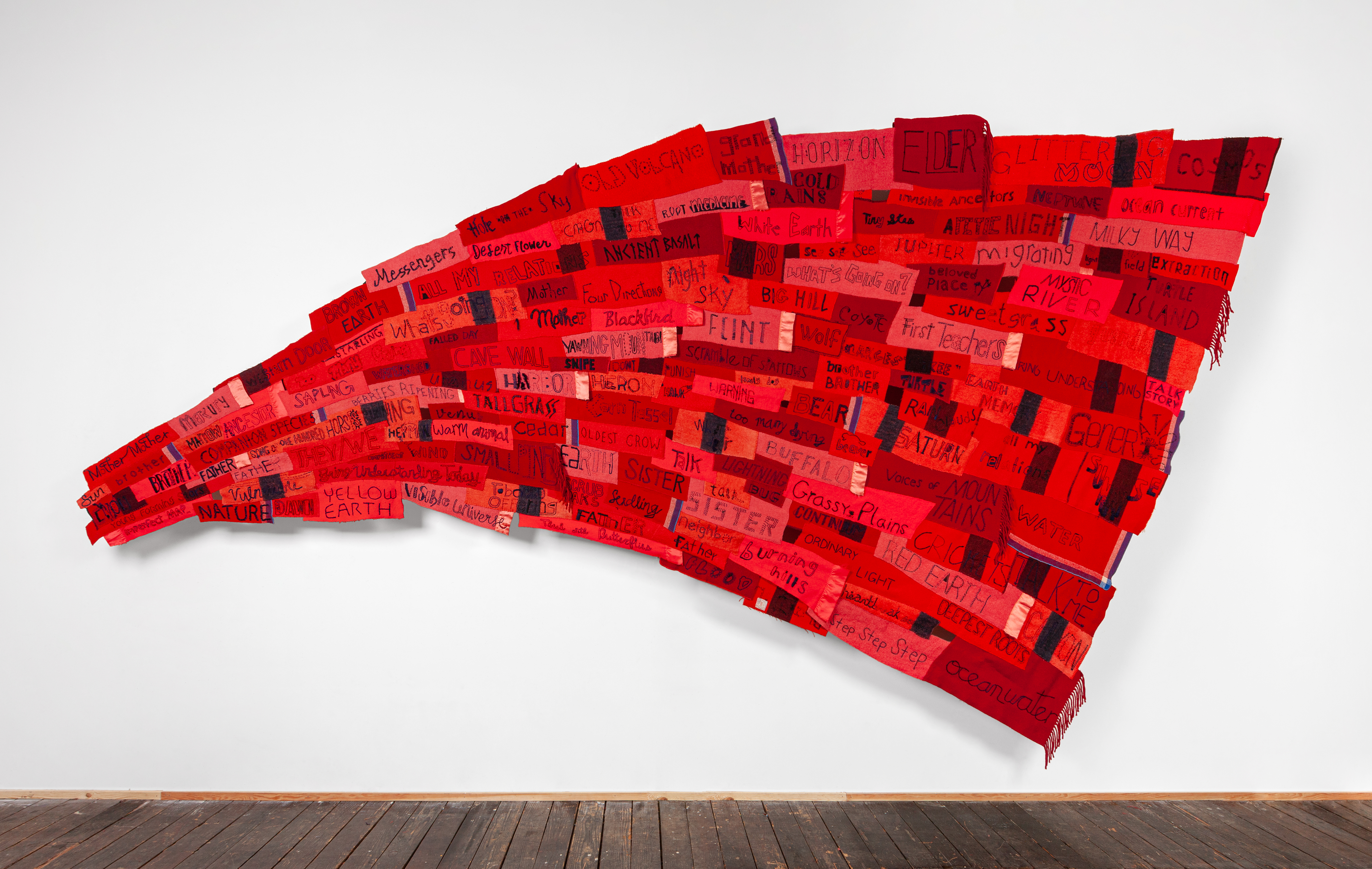 Reclaimed wool blankets, embroidery floss, thread