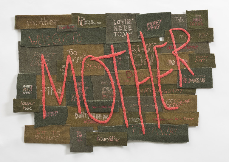 Reclaimed wool blankets, embroidery floss, thread