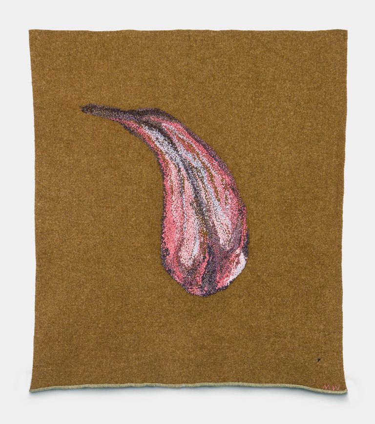 View showing French knot embroidery technique used to render the tongue.