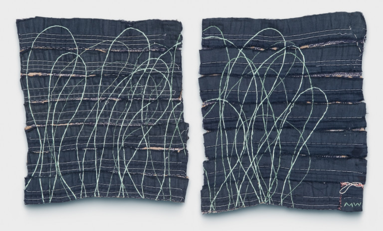 Reclaimed wool, satin bindings, thread