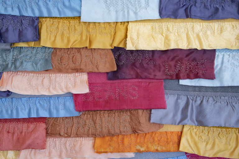 Satin binding, felt, embroidery floss