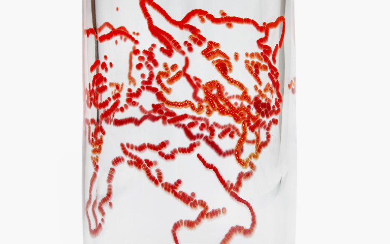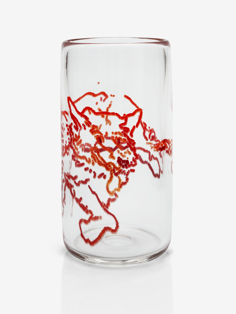 I was also attracted to using glass beads as a way of extending a tradition, however radical and modern, of Indigenous beadwork. I quickly learned from my collaborators (known as gaffers) that glass needs to be compatible for it to fuse. We experimented with the Czech glass seed beads. After creating some glass cylinders rolled into beaded arrangements, it took 24 hours in an annealing oven – in which the glass cools down slowly to room temperature – to see the results. The two types of glass weren’t necessarily compatible, but the story of compatibility and incompatibility is one that made sense to me and further compelled the direction of the vessels we created.