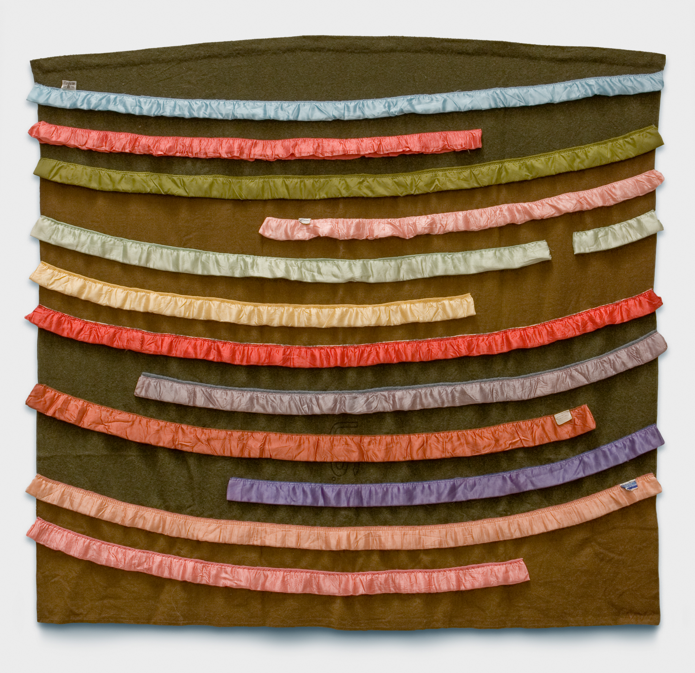 Reclaimed wool blankets, satin bindings, thread.