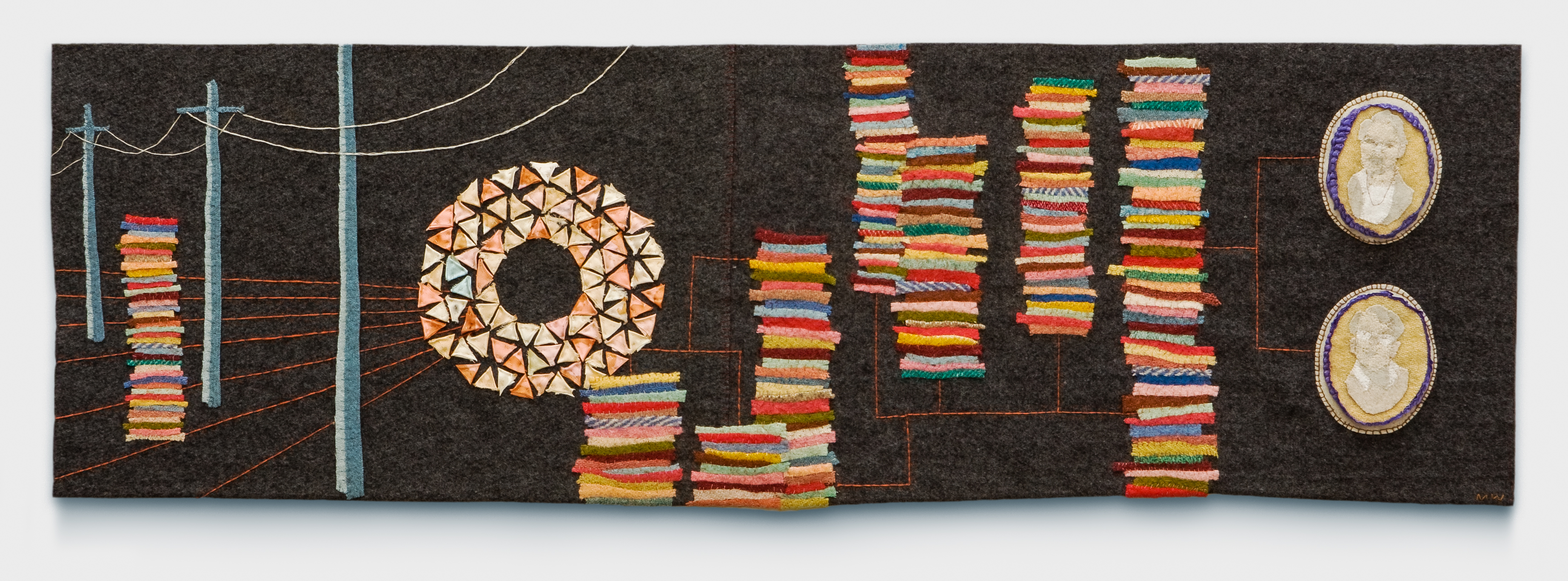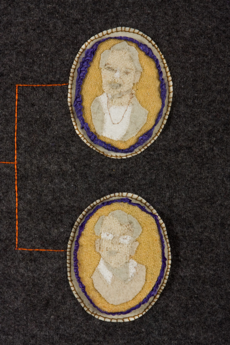 Sewing sample made as a maquette for a 2007 commission by Seattle City Light. The portraits at right are my parents, Dave and Romayne Watt.