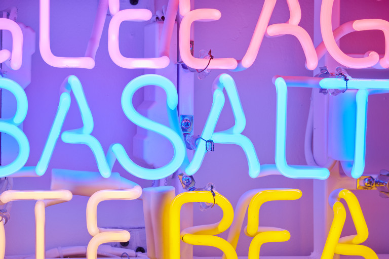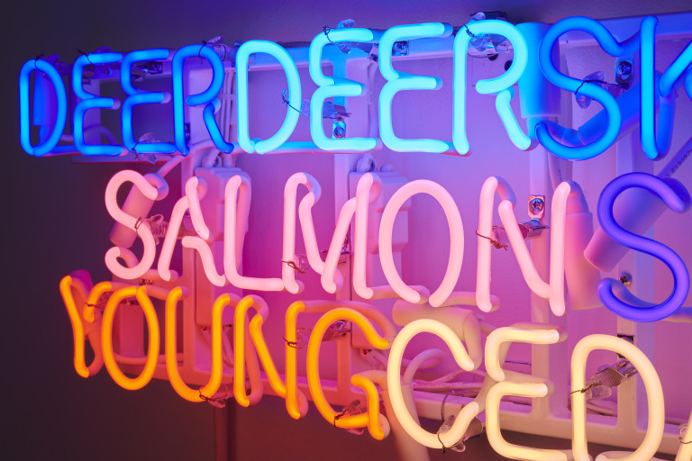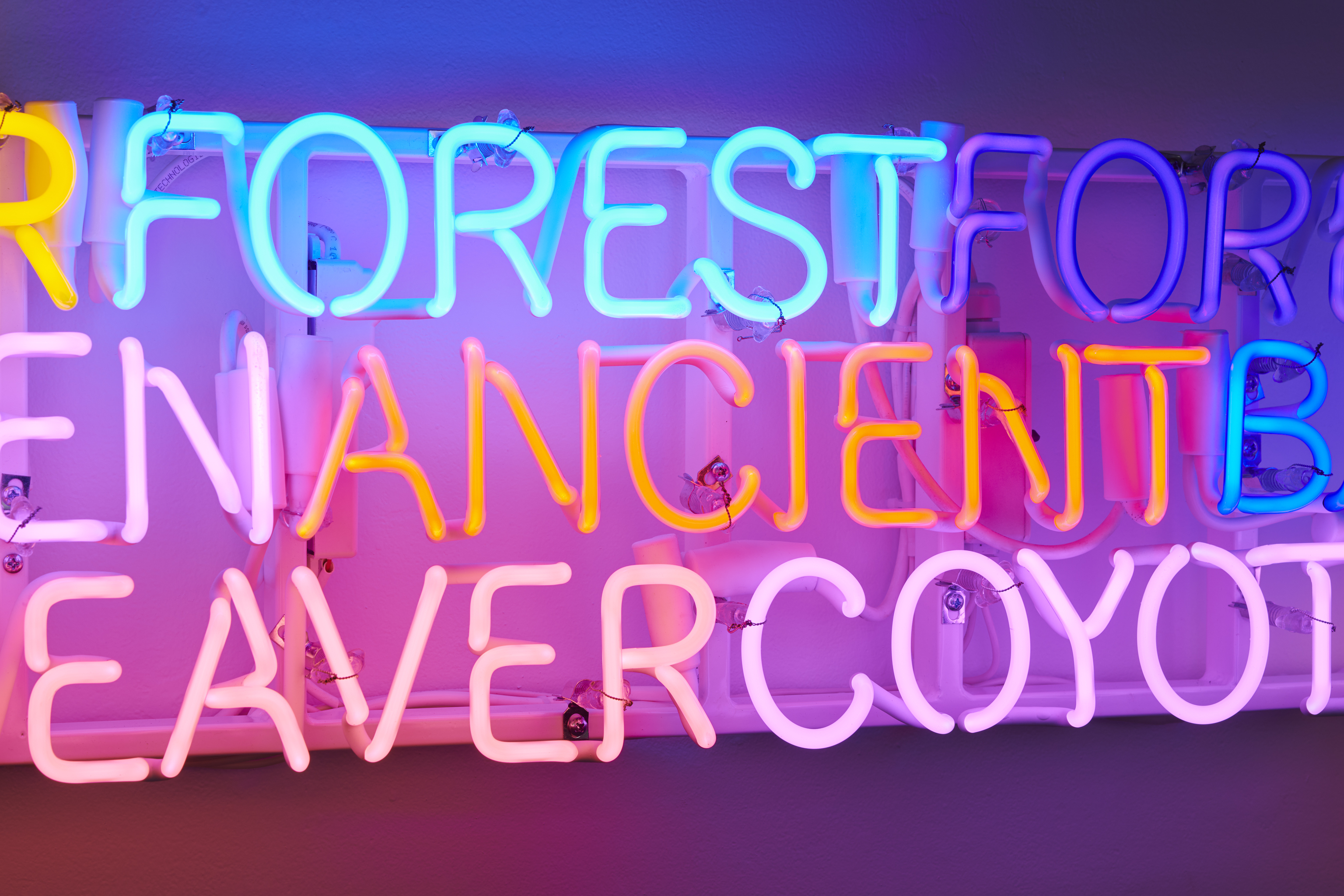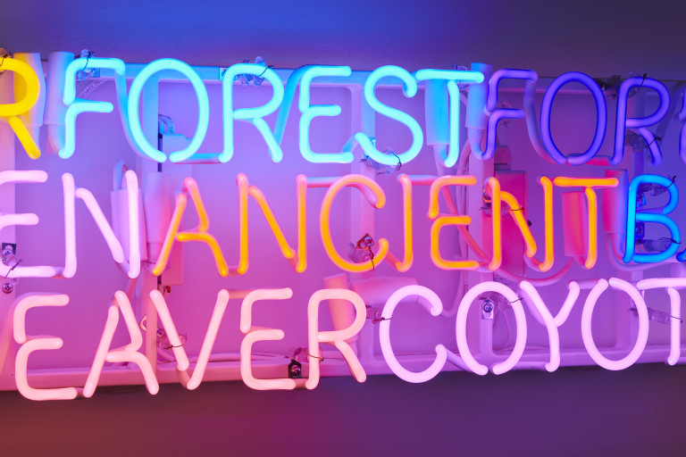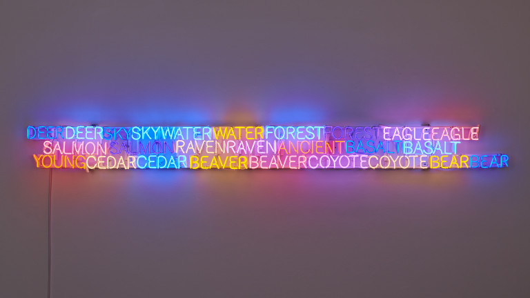 Shared Horizon (Keepers of the Western Door) is an evolution of my work exploring twinning language, neon, and light on the horizon.