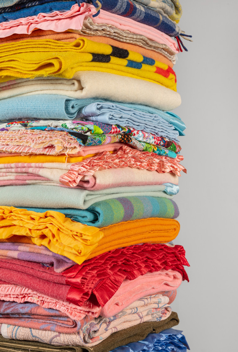 Reclaimed blankets, steel I-beam