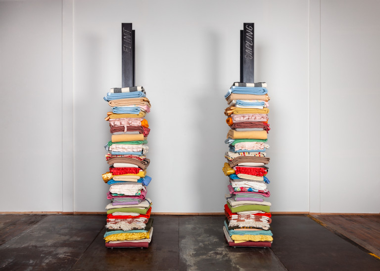 Reclaimed wool blankets, steel